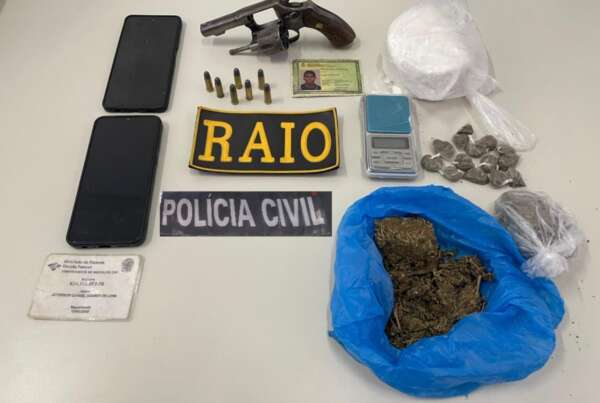 De acordo com a ocorrência, os policiais receberam informações sobre atividades suspeitas em um imóvel localizado no bairro Araça. Ao chegarem ao endereço, dois indivíduos tentaram fugir, mas foram capturados. No interior da residência, os agentes encontraram um revólver calibre .38, sete munições, 288 gramas de cocaína e 137 gramas de maconha.