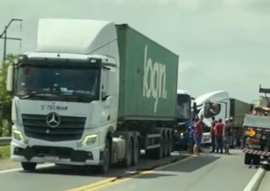 De acordo com as primeiras informações, a colisão envolveu três caminhões e um ônibus. Até o momento, não há confirmação de pessoas feridas.