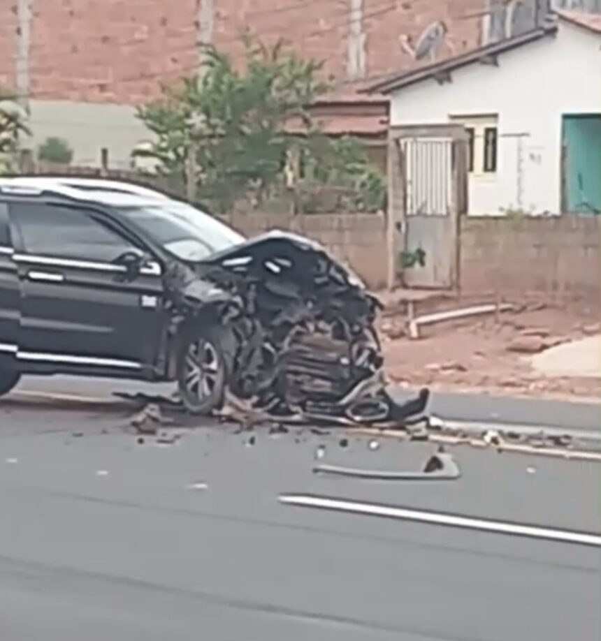 Na manhã desta quarta-feira (7), uma viatura do DETRAN se envolveu em um acidente com um carro Fiat Toro.