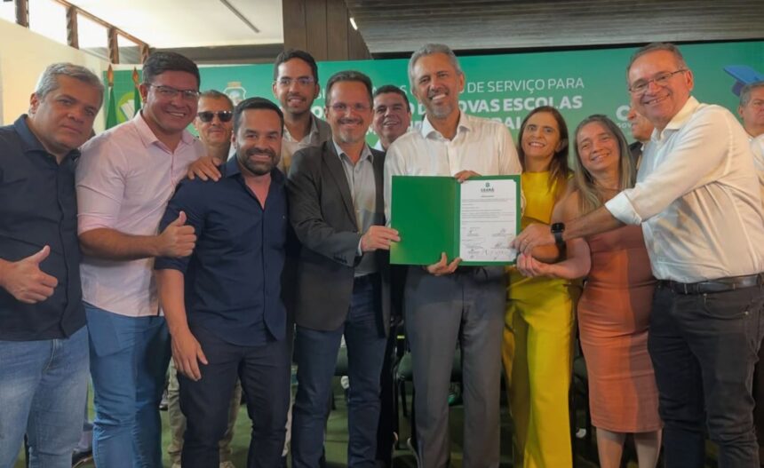 O governador Elmano de Freitas assinou, nesta quinta-feira (4), no Palácio da Abolição, em Fortaleza, ordens de serviço para a construção de nove escolas em oito municípios cearenses. O investimento é de R$ 106,7 milhões e irá beneficiar 4.860 estudantes.
