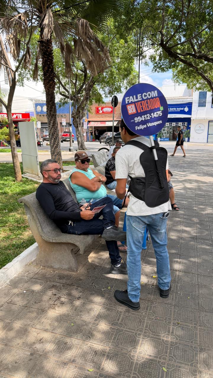 Na manhã deste sábado (06), o presidente da Câmara Municipal de Juazeiro do Norte, o vereador Felipe Vasques (AGIR), esteve no centro da cidade, realizando o trabalho de divulgação da prestação de contas dos serviços realizados em 2025.