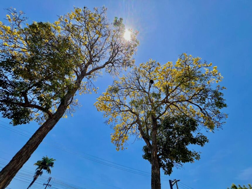 A floração dos ipês segue chamando atenção na região do Cariri. Nesta semana, diversos ipês amarelos puderam ser observados ao longo da Avenida Padre Cícero, principal via que liga Juazeiro do Norte ao Crato.